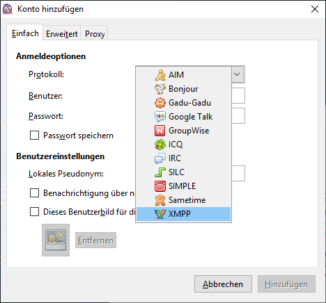 Konfiguration des XMPP-Client „Pidgin“