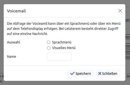 Image Bei Snom Telefonen mit farbigem Bildschirm können sie die Voicemail alternativ zum Sprachmenü auch visuell am Telefon abfragen. Dazu erscheint bei Verwendung der Funktion „Voicemil“ der nebenstehende Dialog.