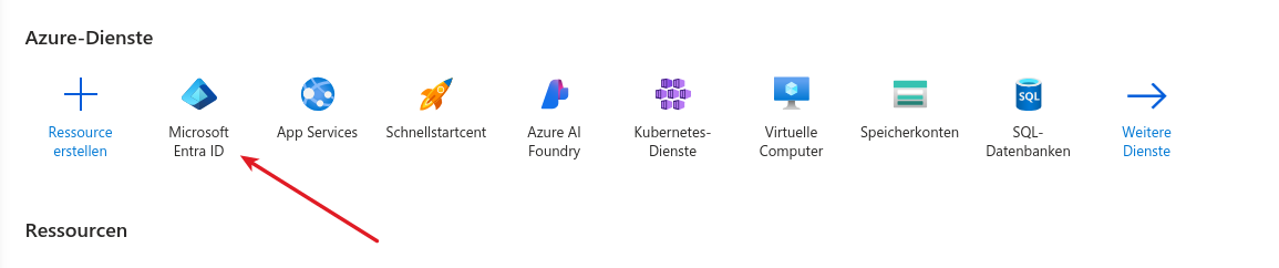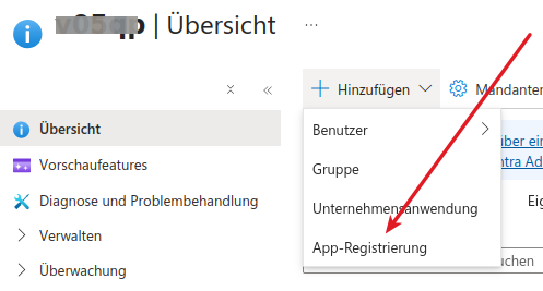 Zunächst ist in jedem Fall eine App-Einrichtung in der Azure-Plattform erforderlich. Loggen Sie sich beim