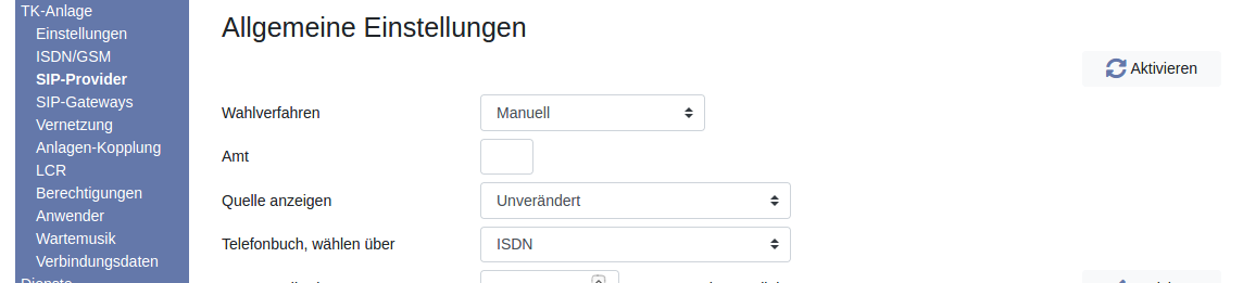 Image Sofern Sie neben der Telefonie über SIP auch ISDN zur Verfügung haben können Sie beim manuellen Wahlverfahren im Menü TK-Anlage ► SIP-Provider dafür sorgen, dass bei jedem Telefonat der Weg frei gewählt werden kann. Die Abbildung links zeigt die Einstellungen.