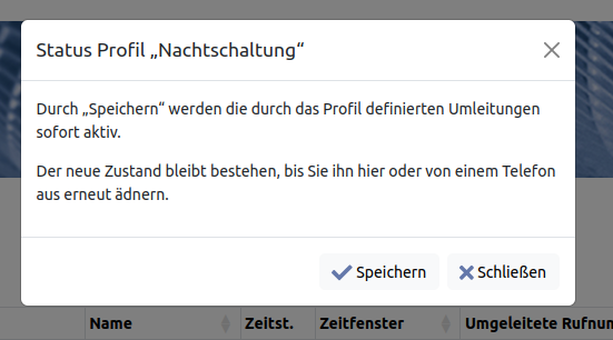 Profile wirken ausschließlich für Anrufe von außen. Die Prüfung darauf findet vor allen anderen Umleitungen statt.