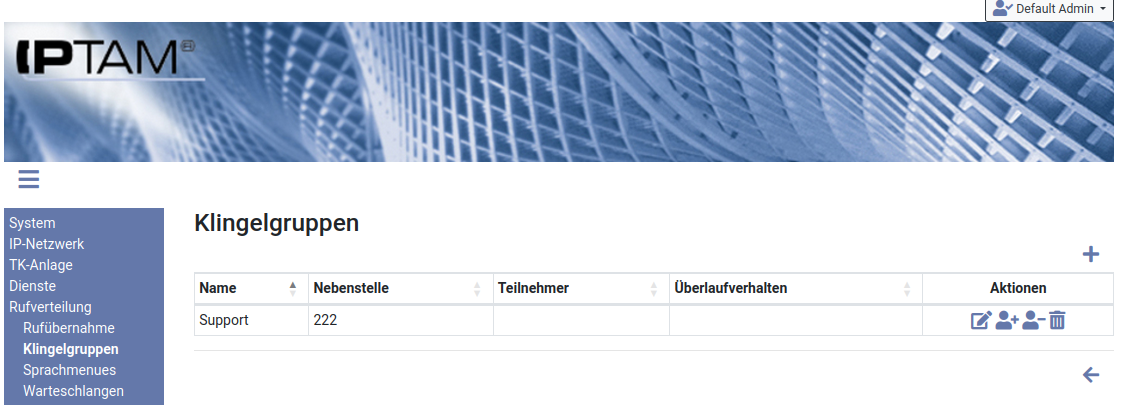 Sobald die Schnellverwaltung für eine Gruppe aktiviert ist, erweitert sich die Darstellung der Übersicht (links sehen Sie ein Beispiel für Klingelgruppen). Sie sehen die beiden Icons