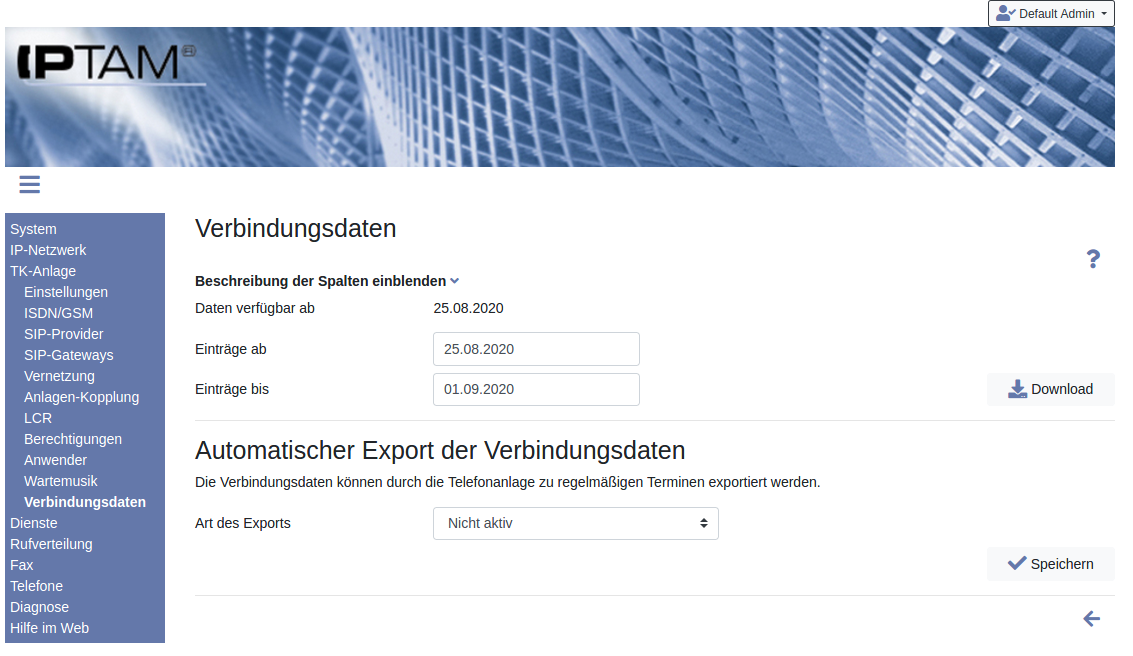 Image Die IPTAM® PBX bietet Ihnen die Möglichkeit, Verbindungsdaten als CSVComma Separated Values