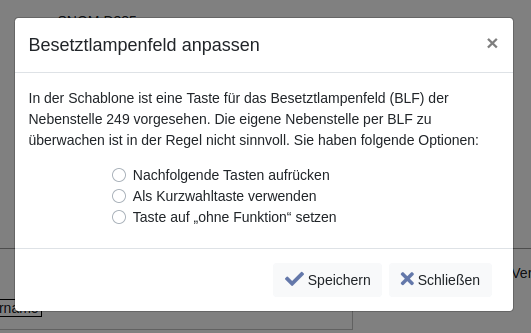 Verwenden Sie eine Schablone, wenn Sie mehreren Anwendern Telefone mit gleichen oder ähnlichen Tastenbelegungen zuweisen wollen (Links dargestellte Ausklappbox). Ist das nicht der Fall können Sie ein Telefonmodell eingeben oder durch Anklicken des Icon auswählen.