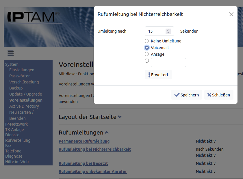 Einstellungen zu Rufumleitungen.