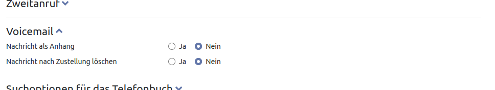 Rechts sehen Sie die Optionen für die Voicemail. Sie können festlegen, ob die Nachrichten als Anhang verschickt werden sollen und ob diese nach dem Versand gelöscht werden.