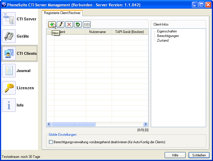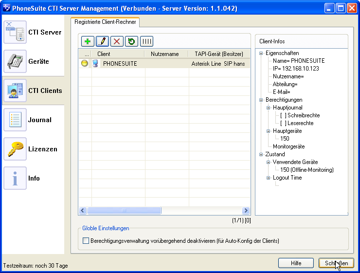 ® CTI Server steht in einer 30 Tage Testversion mit vollem Funktionsumfang auf der