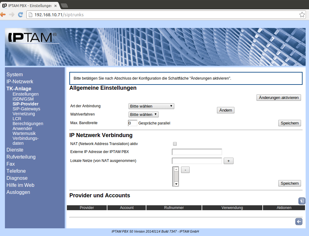 Bei der Konfiguration der IPTAM® PBX zur SIP Provider Nutzung gehen Sie folgenderma­ßen vor: