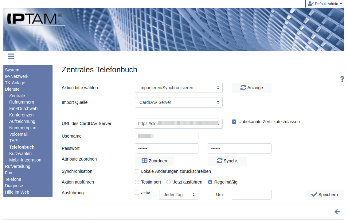 ® PBX mit einem CardDAV Server verbinden und Kontaktdaten von dort übernehmen oder diese auch synchronisieren. Wählen Sie dazu im Menü