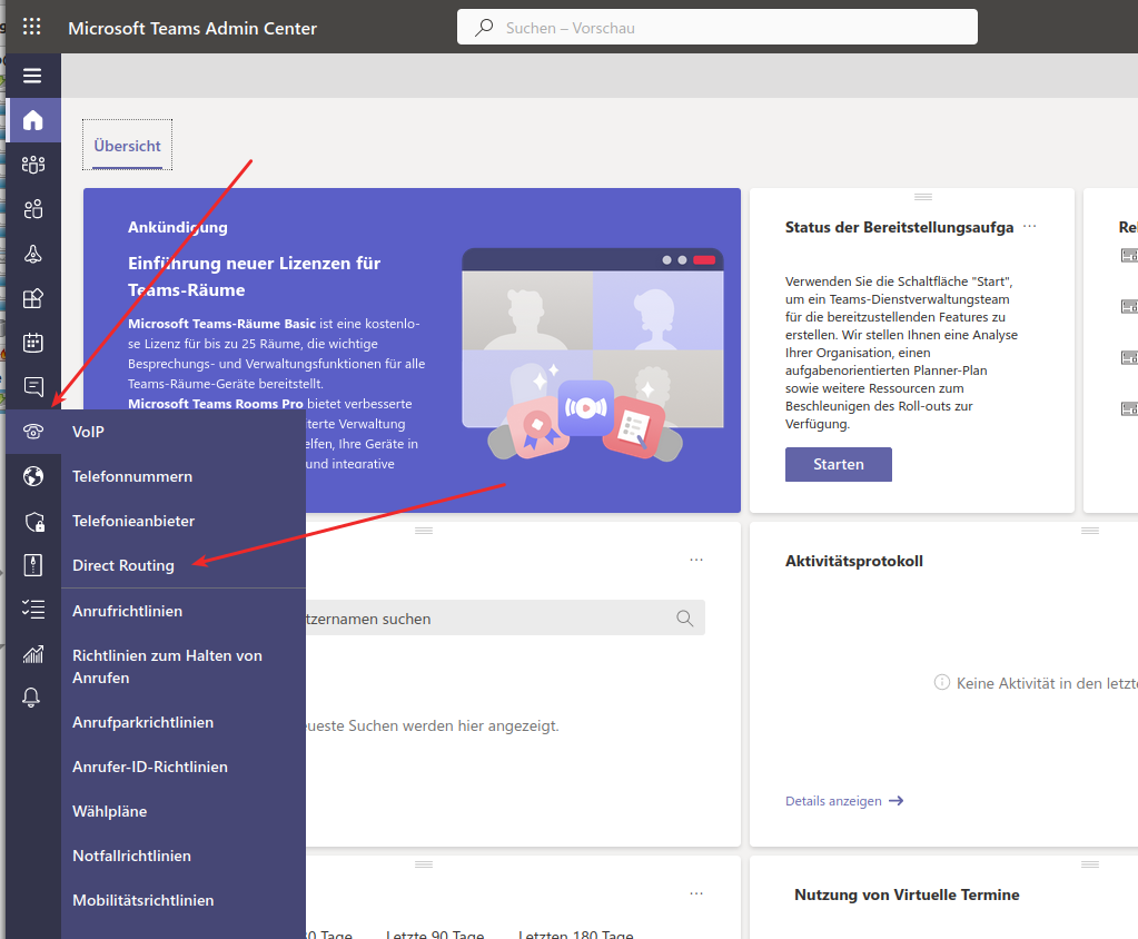 Amin-Portal der Teams-Plattform ein. Die Einrichtung des Direct-Routing finden Sie wie in der Abbildung links gezeigt.