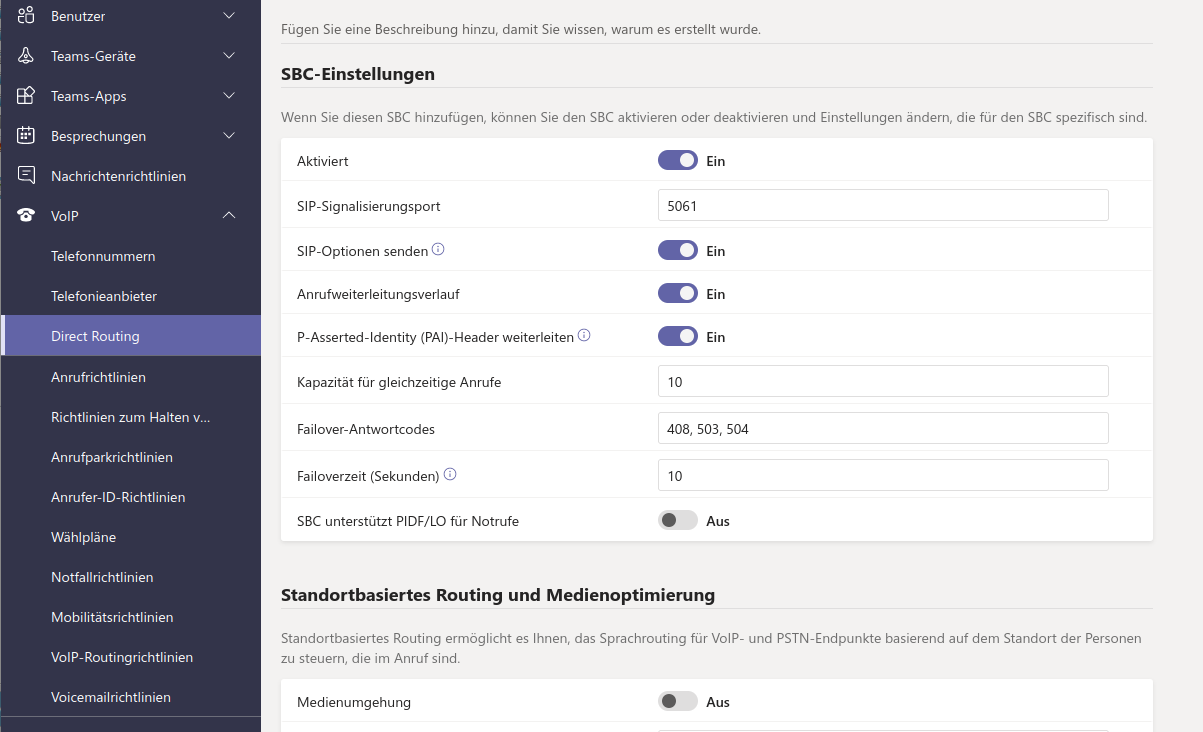 Teams unterstützt komplexe Routing-Regeln, um den Einsatz auch räumlich getrennter SBC anhand von Quell- oder Zielrufnummer zu steuern. Daher sind mehrere Schritte erforderlich.