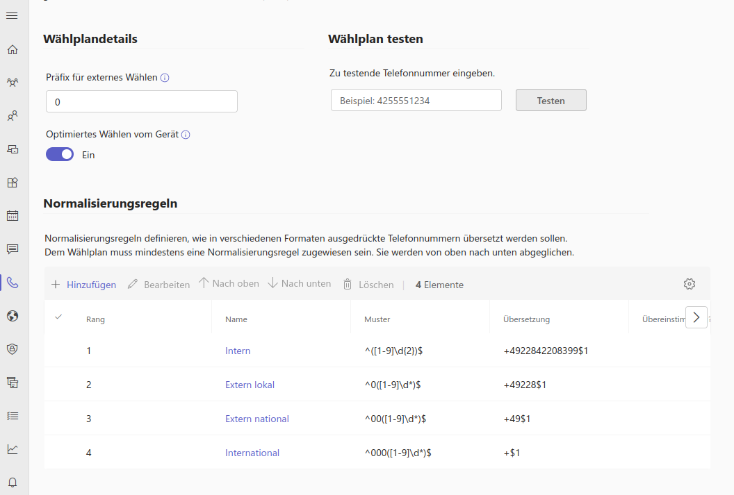 ® PBX werden Rufnummern immer im E.164-Format ausgetauscht. Es ist jedoch in der Regel lästig, diese Rufnummern zu wählen. Dazu kann in Teams eine Anpasusng der Rufnummern durchgeführt werden, so dass beim manuellen Wählen wie am Telefon vorgegangen werden kann.