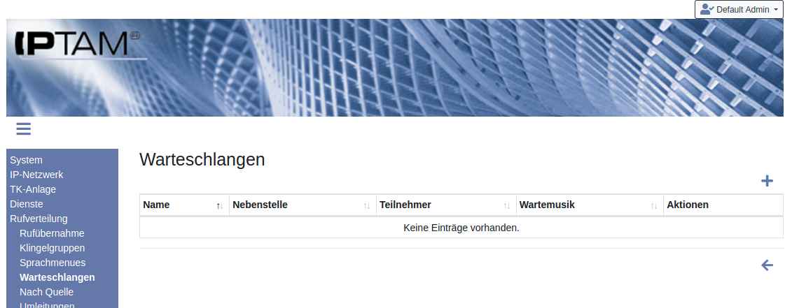 Anrufer an einer Warteschlange hören eine Wartemusik, während bei den zugewiesenen Abfrageplätzen das Telefon klingelt. Zusätzlich zur Wartemusik kann den Anrufern eine Begrüßungsansage und eine Verabschiedungsansage vorgespielt werden. Die Ansagen können über ein Telefon aufgesprochen werden oder als Datei auf die IPTAM® PBX geladen werden.Wenn für eine Warteschlange keine Begrüßungsansage existiert, werden Anrufer direkt auf die Wartemusik geschaltet. Ebenso wird die Verbindung bei einem Fehler direkt getrennt, wenn keine Verabschiedungsansage existiert.