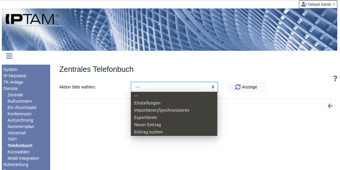 Die Einrichtung des zentralen Telefonbuchs findet durch den Administrator über das Menü