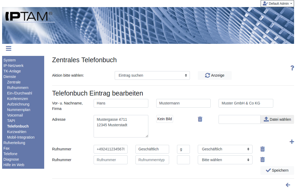 Neue Einträge im Telefonbuch legen Sie als Administrator über das Menü