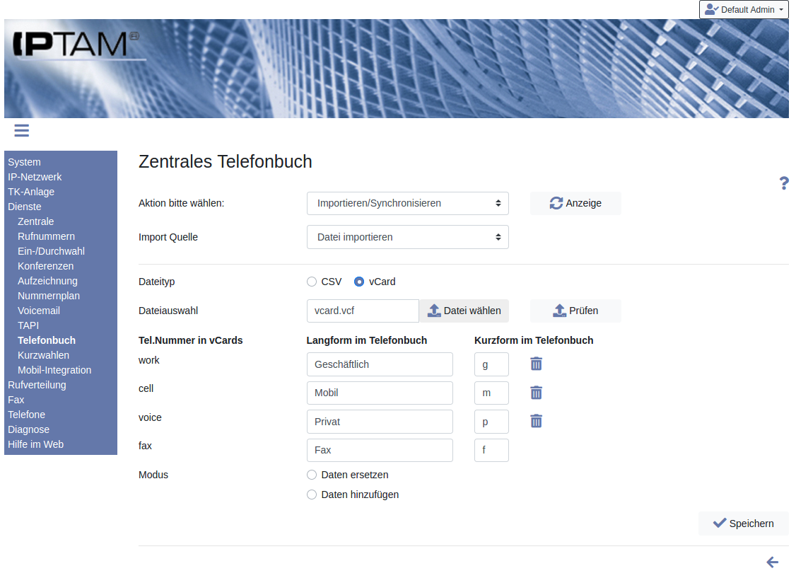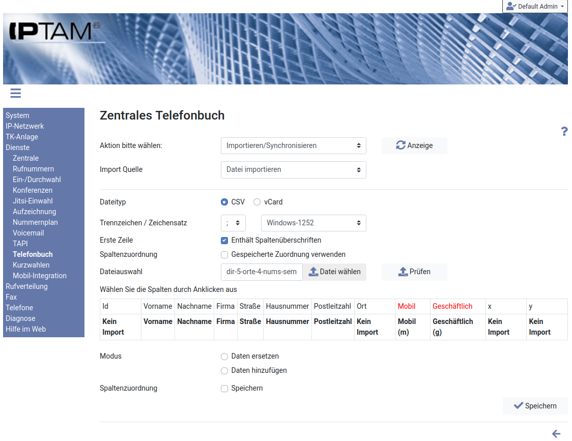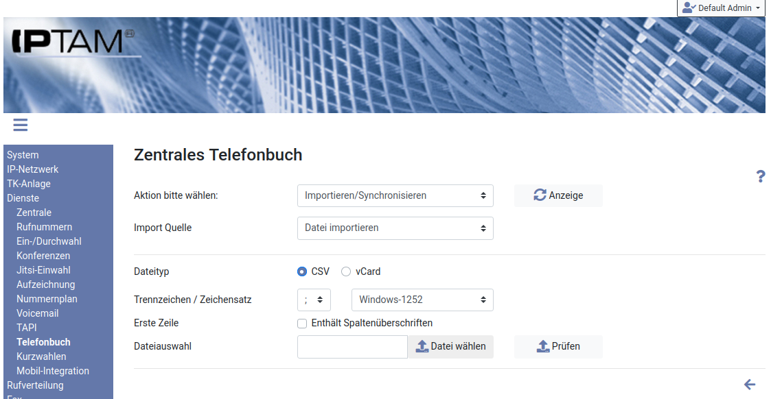 Sie können vorhandene Telefonbucheinträge und Kontaktlisten im CSV-Format in Ihre IPTAM